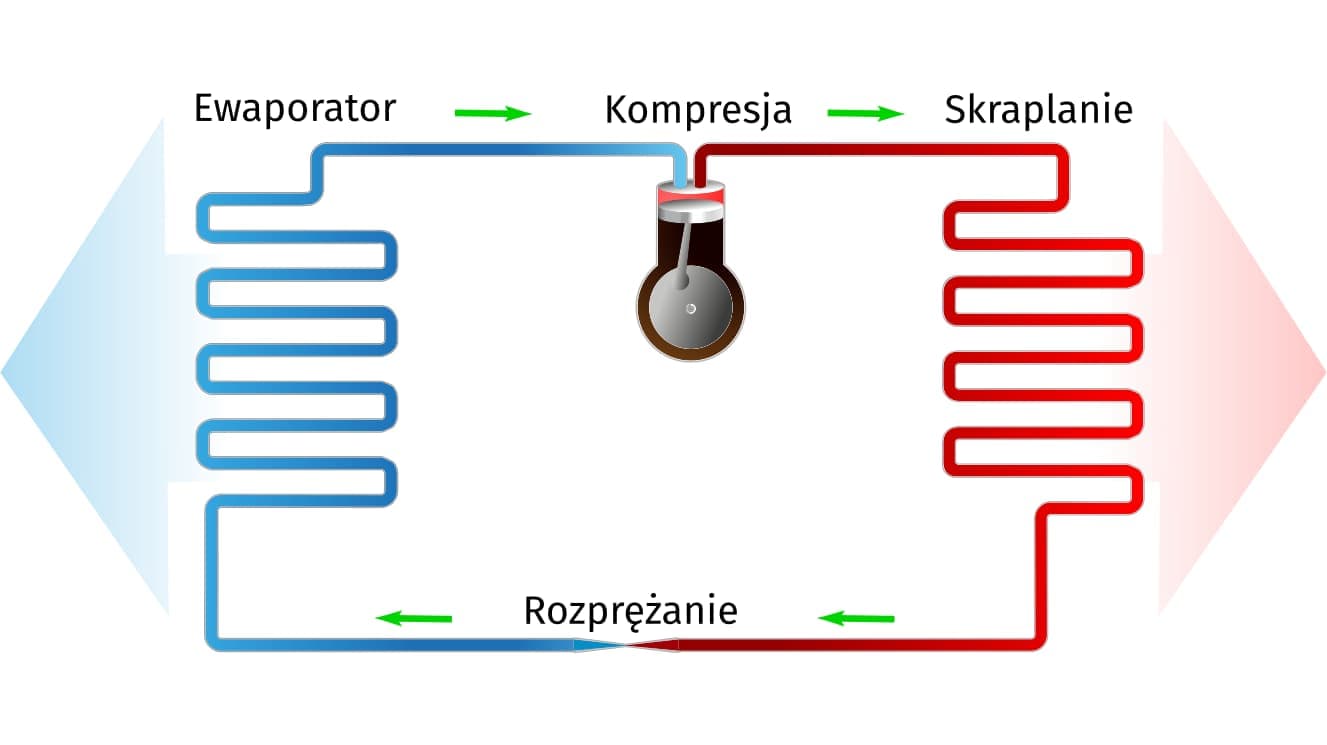 Żeby pokazać jak bardzo uniwersalnych urządzeniem są pompy ciepła prace pompy ciepła zaczniemy opisywać zaczynając od opisu jej w pracy w trybie chłodzenia a potem przejdziemy do trybu grzewczego.